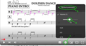 Play-allong podklady viete aj zrýchliť aj spomaliť na YouTube.